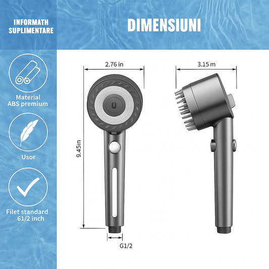 Cap de Duș cu Presiune Înaltă și Filtru Integrat – Jet Reglabil, Filtrare Anti-Calcar pentru O Piele Mai Curată și un Păr Mai Moale